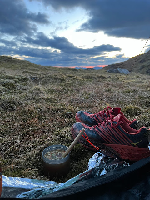 With the days effort finally over we pitched up at 870m about 1/2 k back from the summit of Beinn Tulaichean